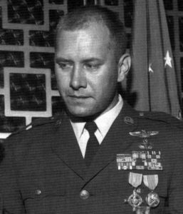 Captain Charles D. Langham distinguished himself by gallantry in connection with military operations against an opposing armed force as Aircraft Commander of an HH-3E helicopter in Southeast Asia on 24 October 1969. On that date, while attempting to recover two downed Air Force pilots., Captain Langham’s aircraft was subjected to intense hostile fire. Displaying superb airmanship, Captain Langham nursed his critically damaged aircraft way from the immediate hostile area and effected an emergency landing in a confined, remote area which saved his crew from probable serious injury or possible death. By his gallantry and devotion to duty, Captain Langham has reflected great credit upon himself and the United States Air Force.