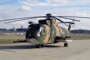 The Sikorsky HH-3E (Sikorsky S-61R) earned the nickname Jolly Green Giant during the Vietnam War. It is a dedicated Combat Search and Rescue (CSAR) helicopter flown by the U.S. Air Force, based on the CH-3C transport helicopter. The aircraft is flown by two pilots and the crew includes a flight mechanic and gunner. It is a large twin-engine helicopter with a single main rotor/tail rotor configuration. It has retractable tricycle landing gear and a rear cargo ramp. The rear landing gear retracts into a stub wing on the aft fuselage. The helicopter has an extendable inflight refueling boom.